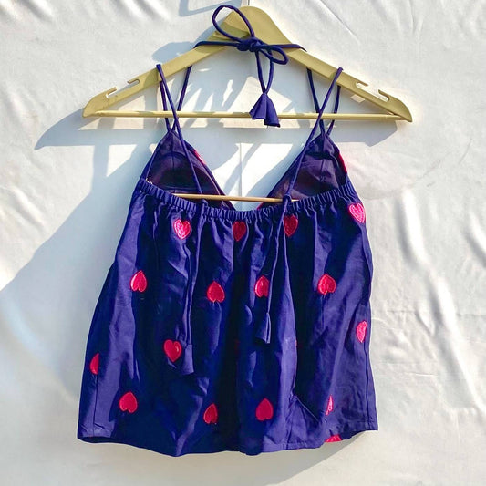 Navy Blue Heart Tree Removable Pads Top - KJ10312