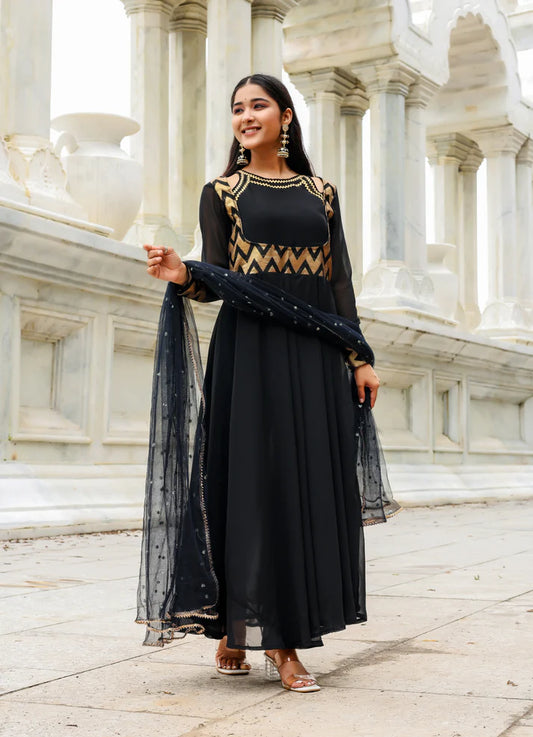 Midnight Noir – Georgette Anarkali Set - 2700- Gheraa10145