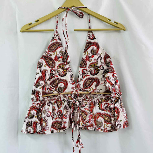 White Paisley Halter Neck Back Knot Cotton Top - KJ0663