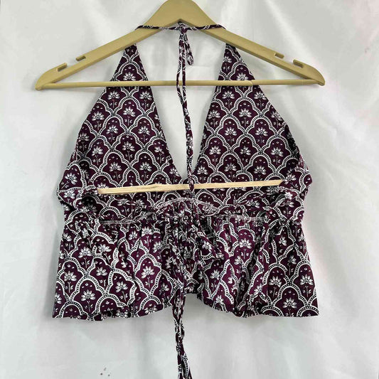Violet Traditional Halter Neck Back Knot Cotton Top - KJ0662