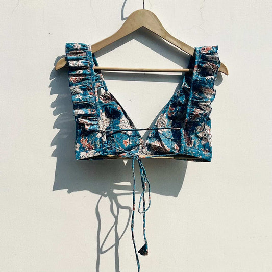 Blue Jaal Frill Cotton Bralette - KJ0777 ( Clearance Sale )