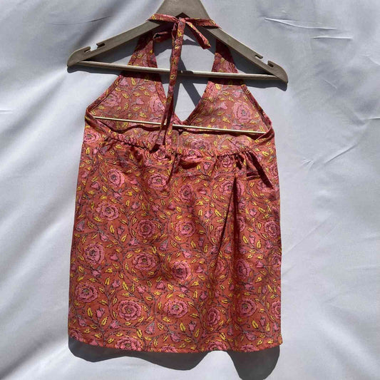 Peach Pink Floral Halter Neck Top- KJ0090 (( Clearance Sale ))