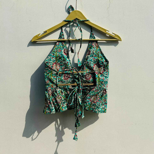 Sea Green Jaal Halter Neck and Back Knot Cotton Top - KJ0794 (( Clearance Sale ))