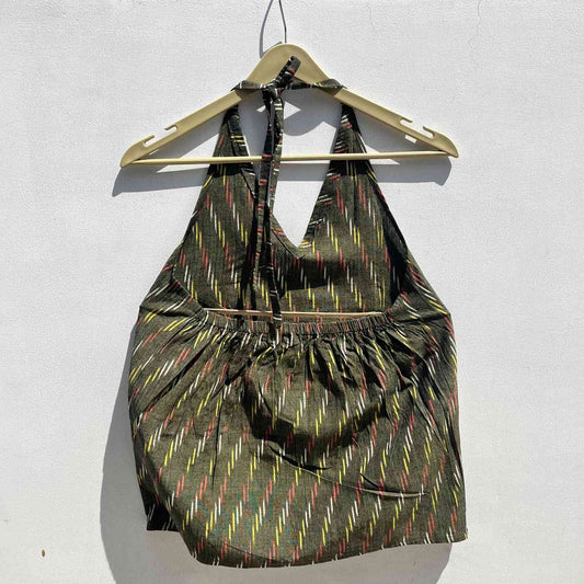 Olive Green Ikat Halter Neck Cotton Top- KJ0570 (( Clearance Sale ))
