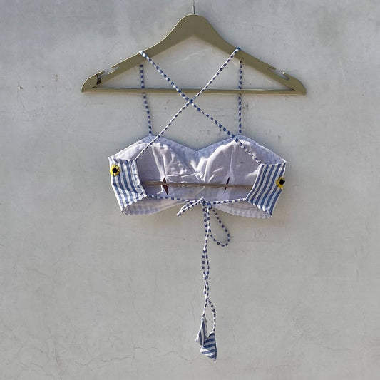 Sunflower Blue Stripe Embroidery Removable Pads Bra - KJ10204
