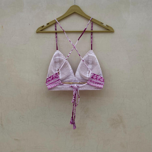 White Purple AbstractRemovable Pads Bra - KJ10092