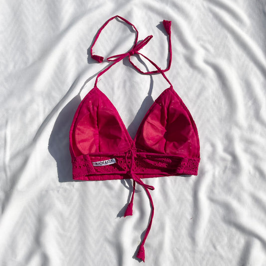 Pink Kantha Cotton Padded Bra - KJ0051