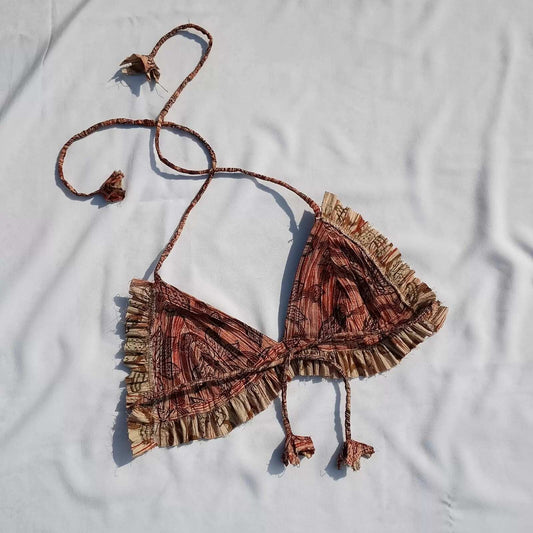 Pin Tuck Block Print Cotton Bra - KJ0029