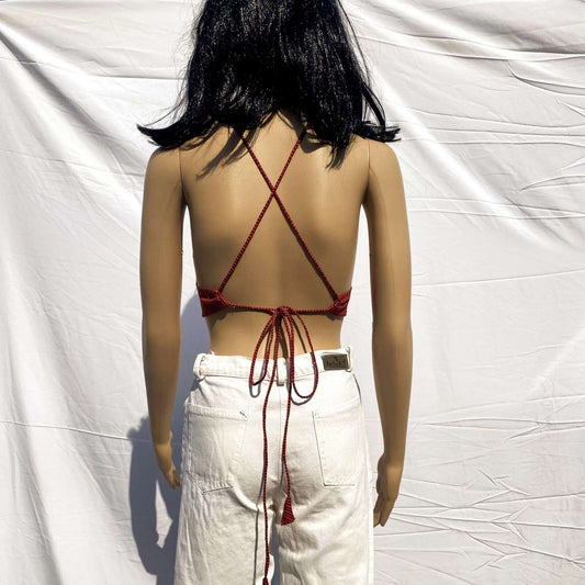Maroon Kantha Cotton Padded Bra - KJ0049