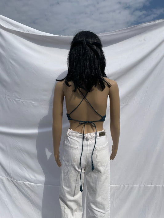 Teal Kantha Cotton Bra - KJ0003