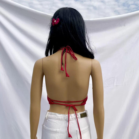 Red Chikan Lace Deep V Neck Padded Cotton Top - KJ0051