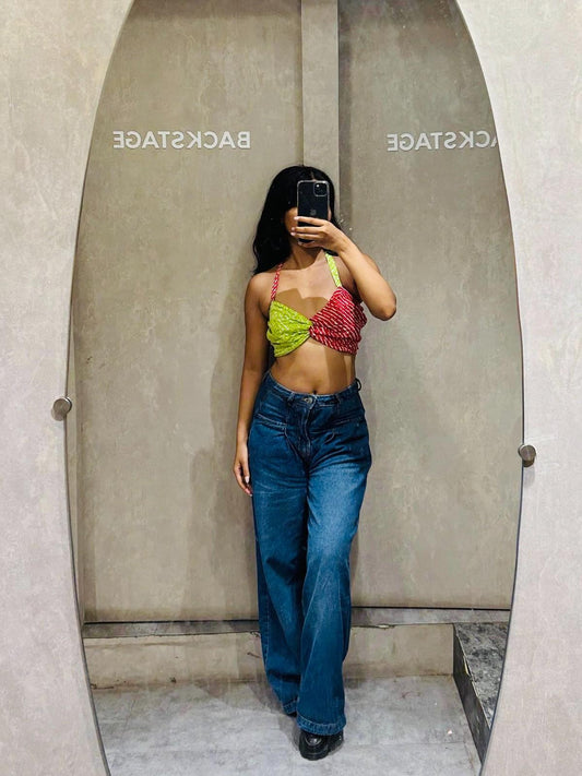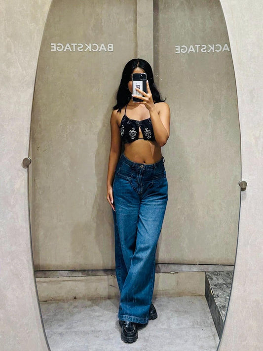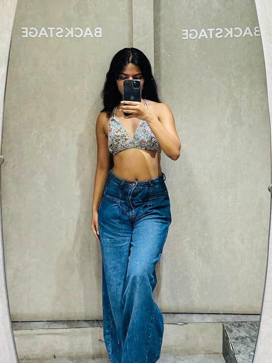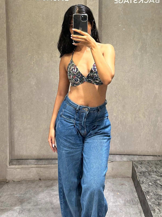 Black Paisley Katha Cemi Bra Top - KJ0644