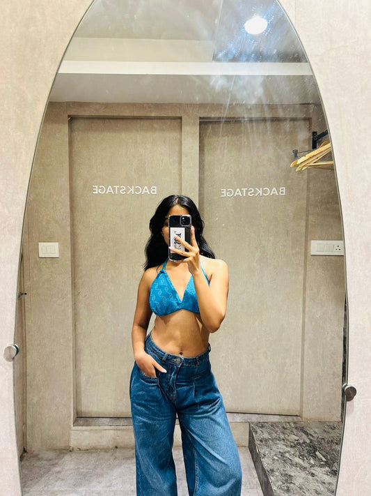 Cyan Blue Butti Hakoba Bra - KJ0691