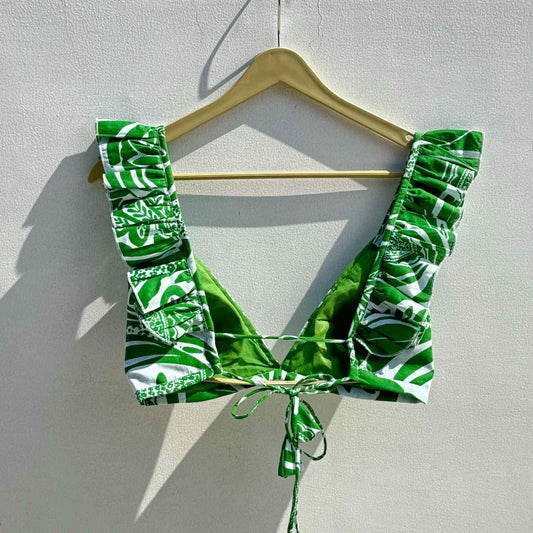 Green Abstract Floral Frill Cotton Bra - KJ0521