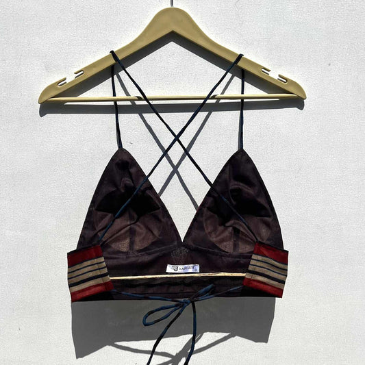 Wine Cotton Velvet Criss Cross Bralette - KJ0511