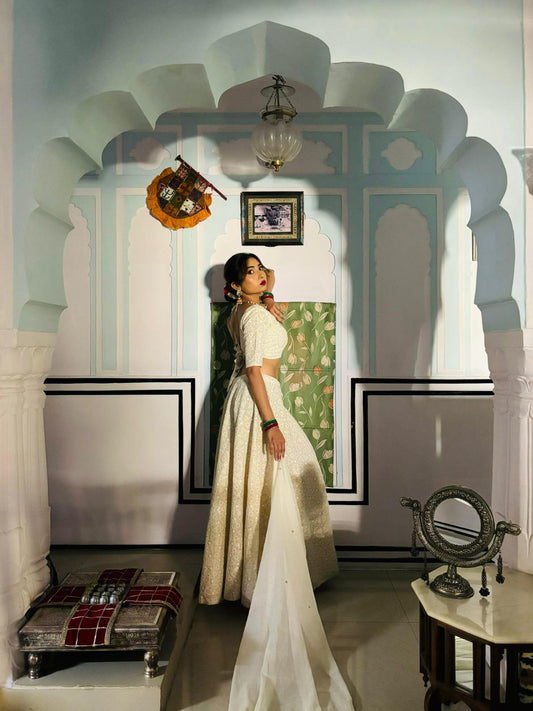 Off White Chikan Blouse , Handwork Dupptta and Lehanga - KJ0705