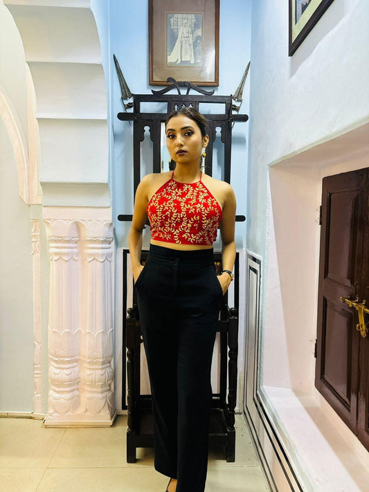 Red Gotta Patti Handwork Criss Cross Top - KJ0718
