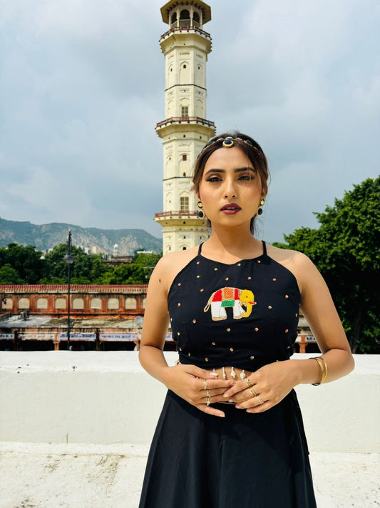 Black Elephant Handwork Criss Cross Top - KJ0717