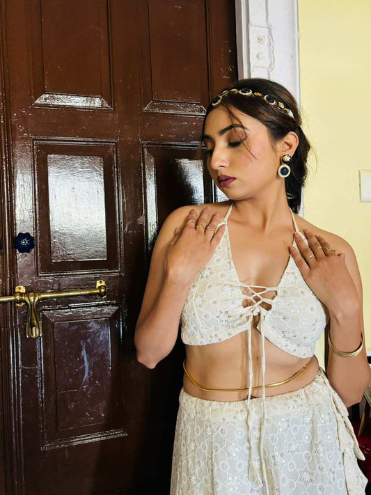 Front Criss Cross Chikan Blouse , Handwork Duppttan and Lehanga - KJ0715
