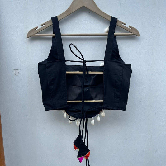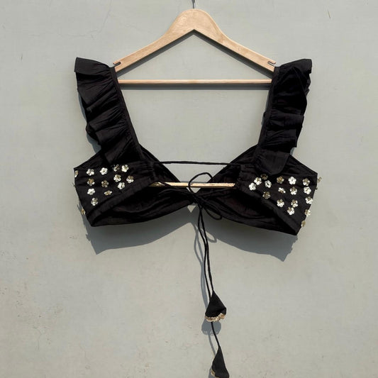 Black Floral Seqin Embroidery Bralette Cum Top - KJ0750