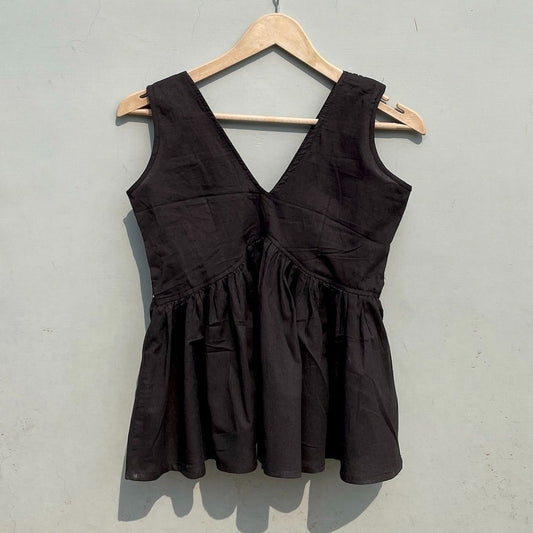 Black Zari Embroidery Depp Neck Cotton Top - KJ0425
