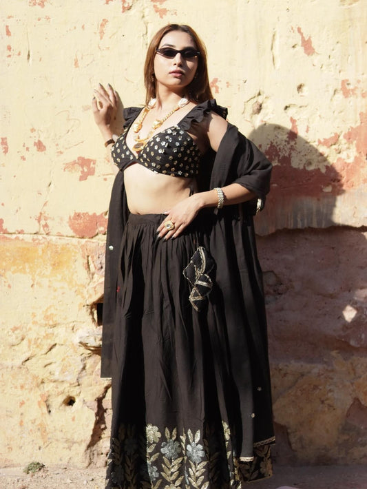 Black Gotta Floral Sequin Blouse , Dupptta and Lehanga - KJ0673