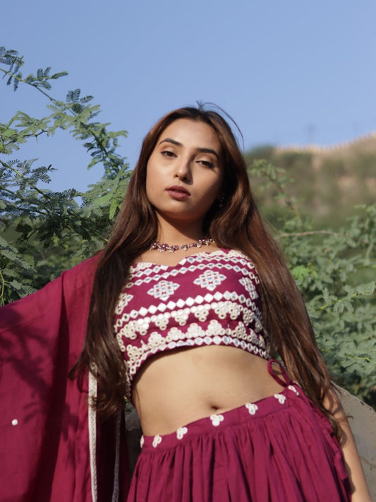 Wine Mirror Gujrati Blouse , Dupptta and Lehanga - KJ0677