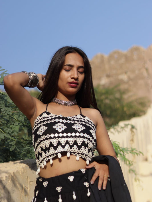 Black Mirror Gujarati Blouse , Dupptta and Lehanga - KJ0674