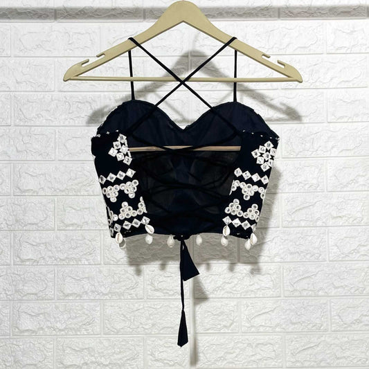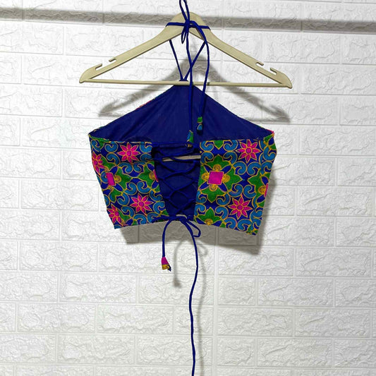 Blue Embroidery Halter Neck Criss Cross Top - KJ0191