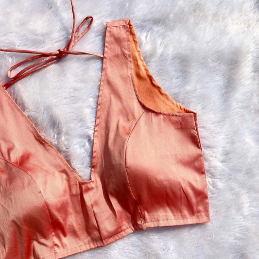 Peach Deep V Neck Plain Blouse - 800 - FAL10176