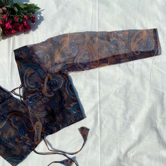Black Ajrakh Tukki Cotton Blouse - 800 - FAL10192