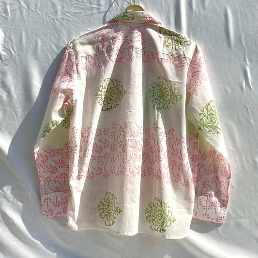 White Floral Pure Handblock Mul Women Shirt - KJ10345