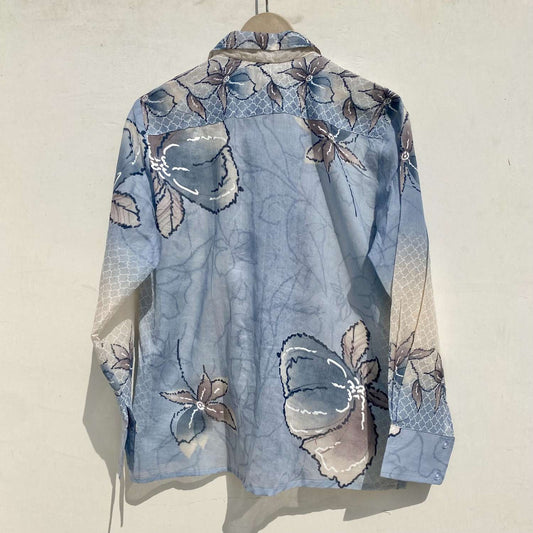 Blue Floral shirt and Grey Patch bra combo - kj10012