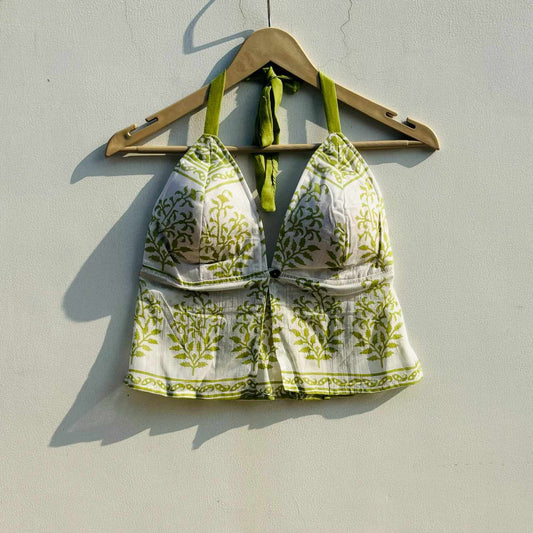 Green Bandhej Kota Doria Removable Pad Bra - KJ0829