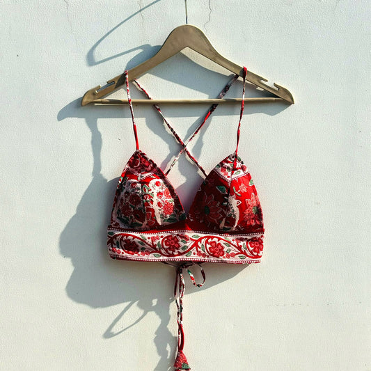 Red Big Floral Cotton Removable Pad Bra - KJ0817