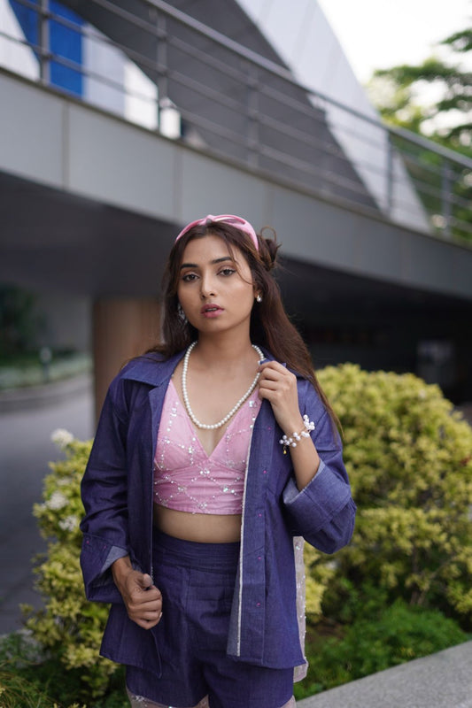 Wine Mirror Navratri Criss Cross Top - KJ0751