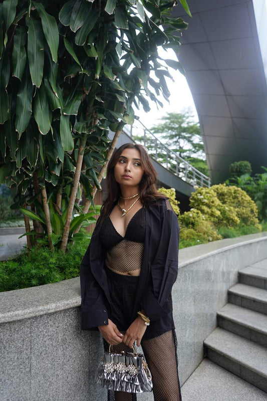 Black Floral Seqin Embroidery Bralette Cum Top - KJ0750