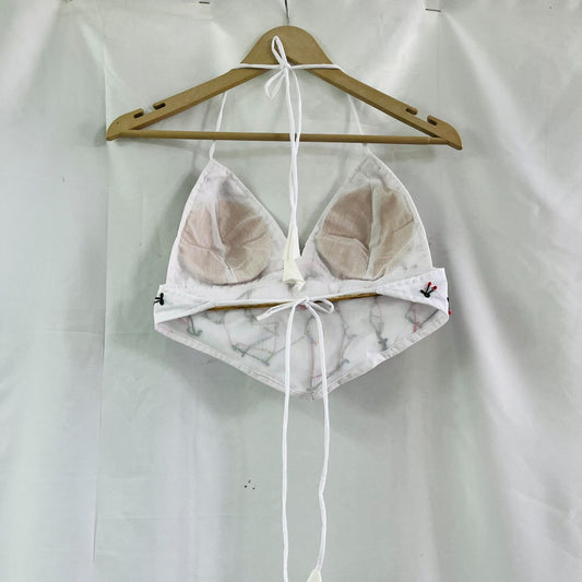 White Booke Thread Embroidery Cotton Bralette - KJ0666