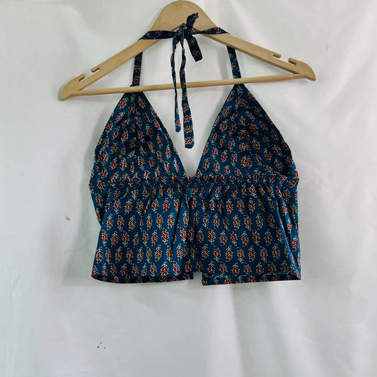 Blue Butti Halter Neck Front Button Cotton Top - KJ0664