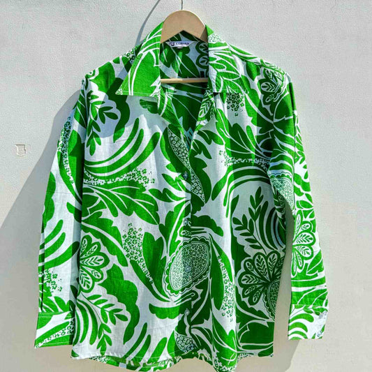 Mitti Green Dobby Hand Embroidery Cotton Shirt - KJ0535