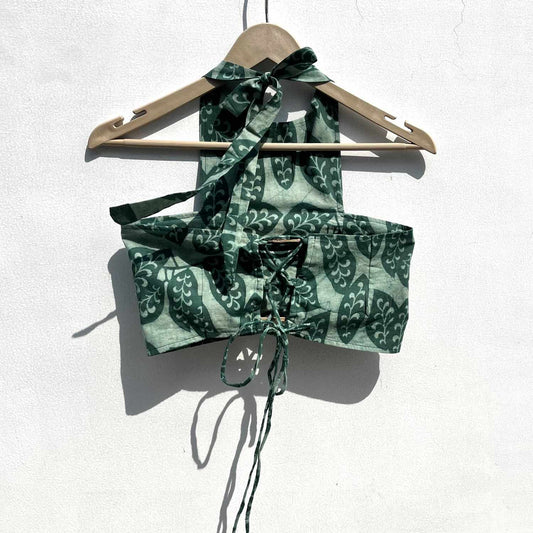 Green Leaf Handblock Criss Cross Cotton Top - KJ0516