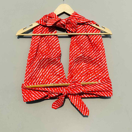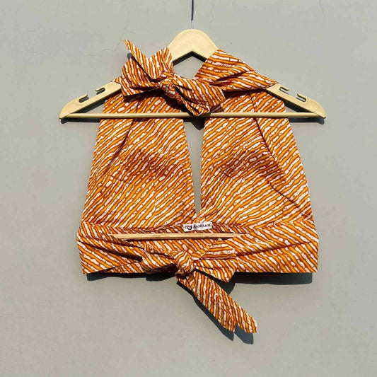 Orange Lehariya Halter Neck and Back Knot Top - KJ0195