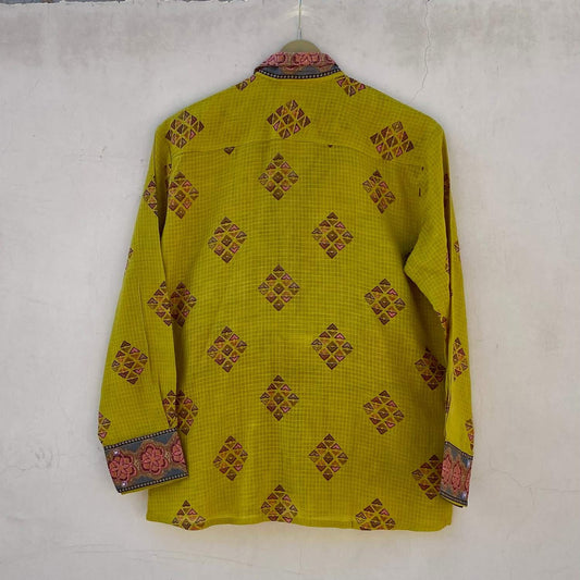Mint Green Floral Thread Embroidery Cotton Women Shirt - KJ10166