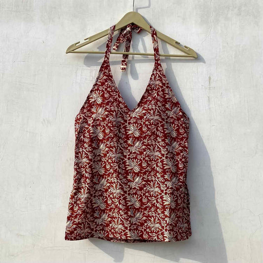 Maroon Kalamkari Halter Neck With Removable Pads Kurti Top - KJ10159