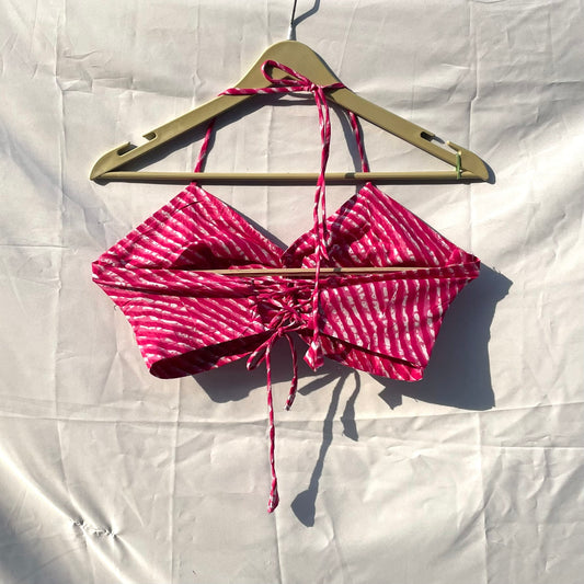 Pink Lehariya Criss Cross Cotton Top - KJ0125