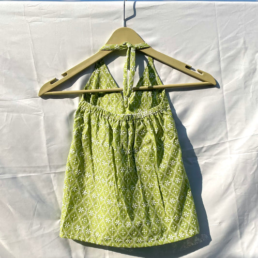 Olive Green Chikan Front Knot Halter Neck Cotton Top - KJ0127
