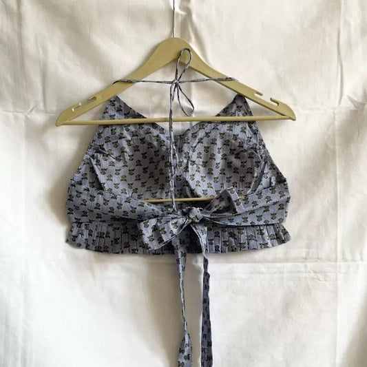 Green Halter Neck Cotton Khadi Top- KJ0041