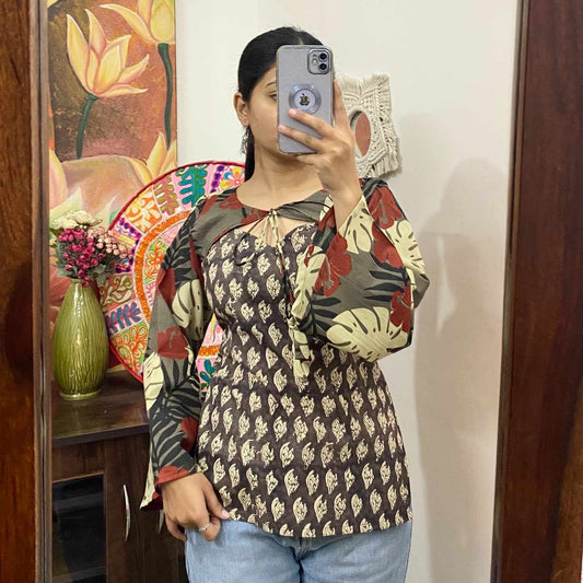 Kalamkari Criss Cross Deep Neck - KJ0115 (( Clearance Sale Item ))
