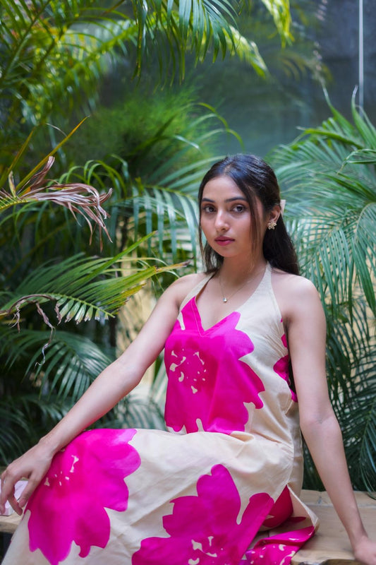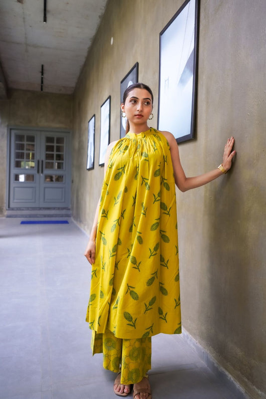 Gulabi Gulnar – Two-Piece Cotton Halter Neck Set - 1500 - Gheraa10056