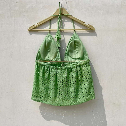Green Chikan Front Knot & Open Tree Removable Pads Top - KJ10077